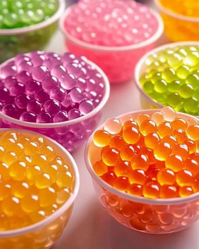 Джус-боллы — это маленькие шарики из желе, наполненные свежевыжатым фруктовым соком или нектаром. При надкусывании оболочка лопается, освобождая жидкость внутри.